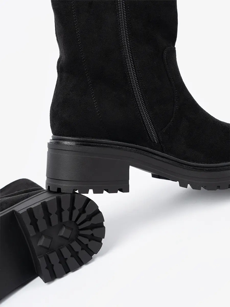 Nasze botki na masywnej podeszwie zostały stworzone z myślą o kobietach ceniących luksus i komfort. Wykonane z wysokiej jakości imitacji zamszu, zapewniają nie tylko stylowy wygląd, ale także trwałość na lata. Uniwersalny, czarny kolor dodaje elegancji i pasuje do każdej kolorystyki ubrań.