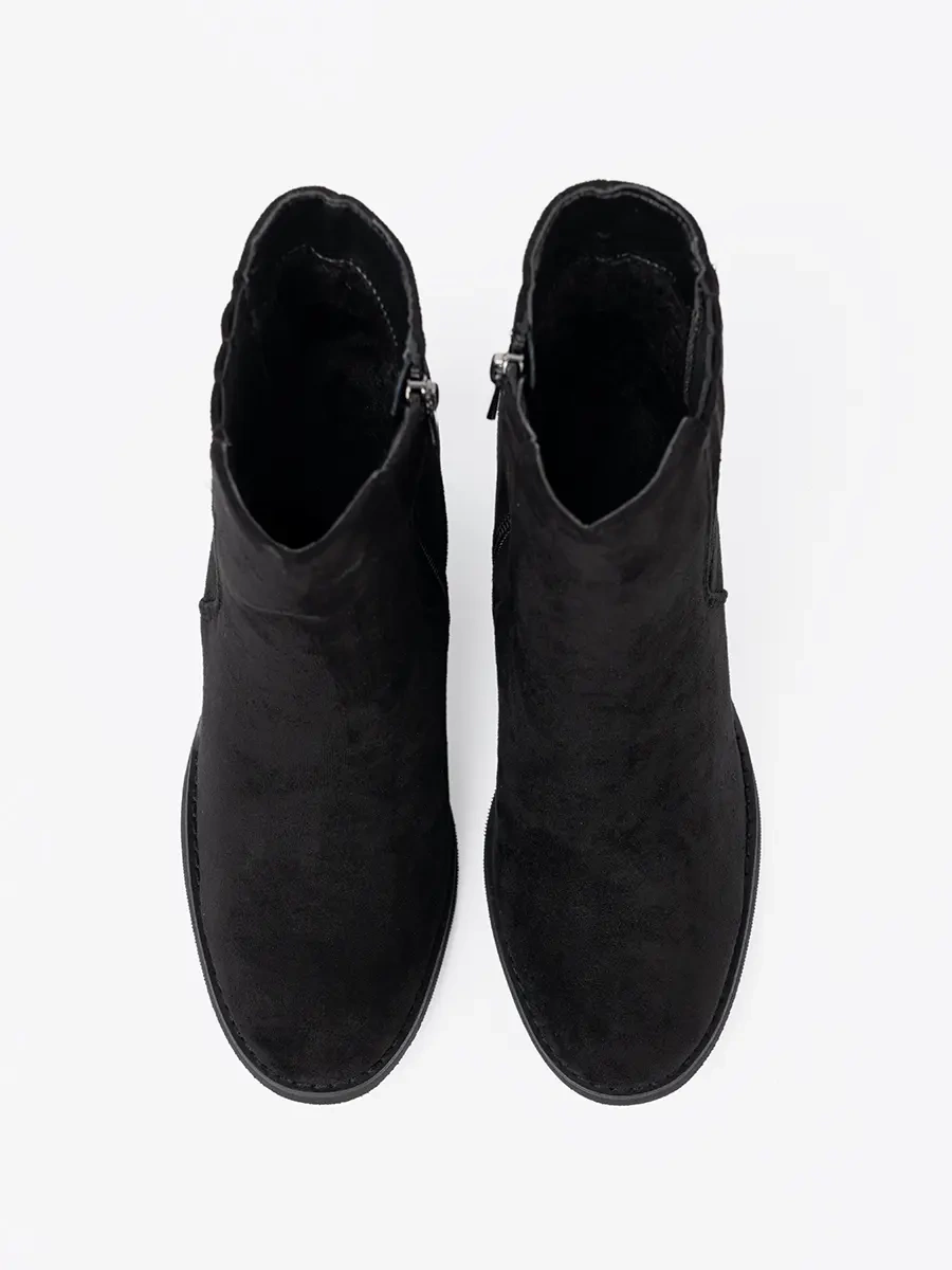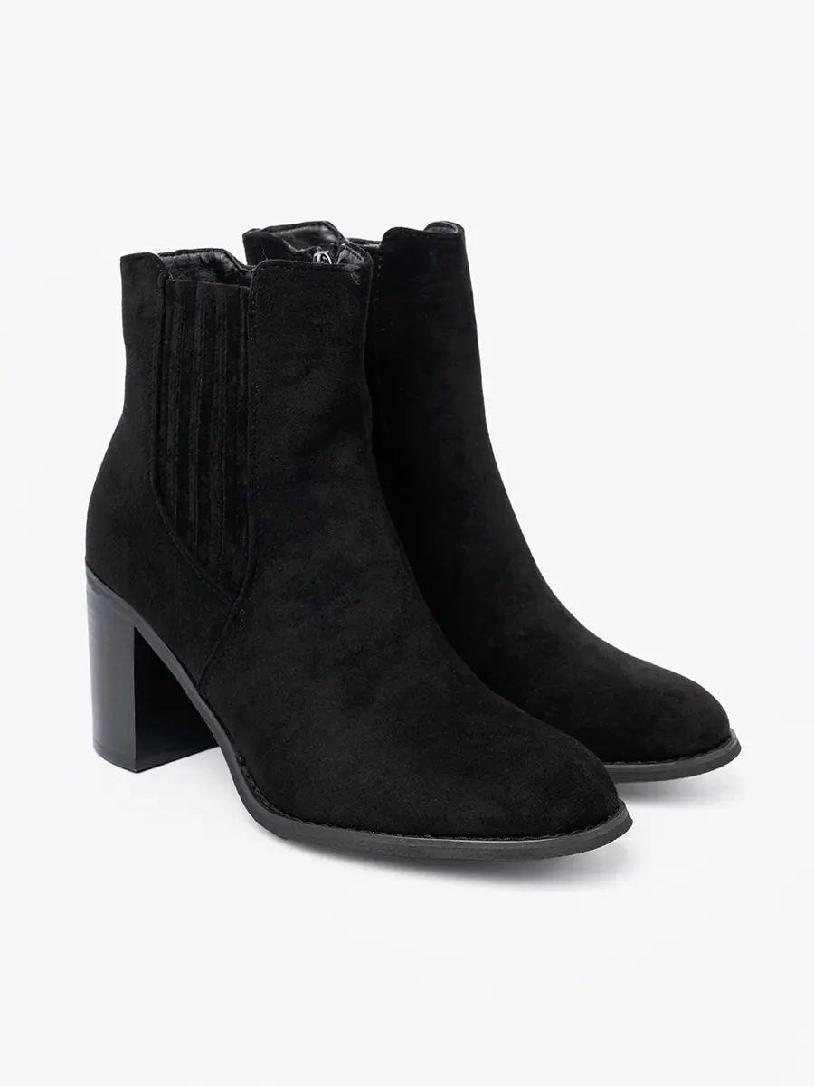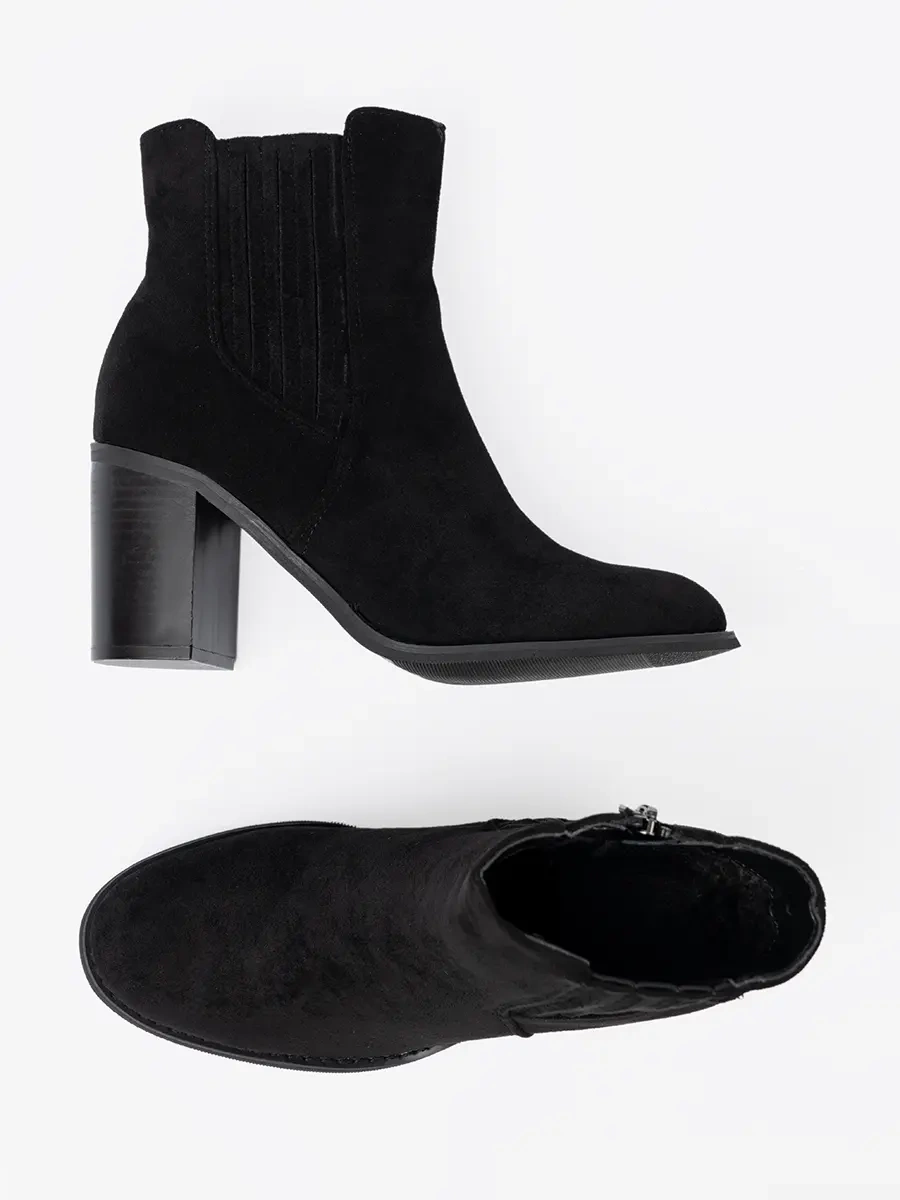 Zamszowe botki na słupku - czarne elegancja na co dzień