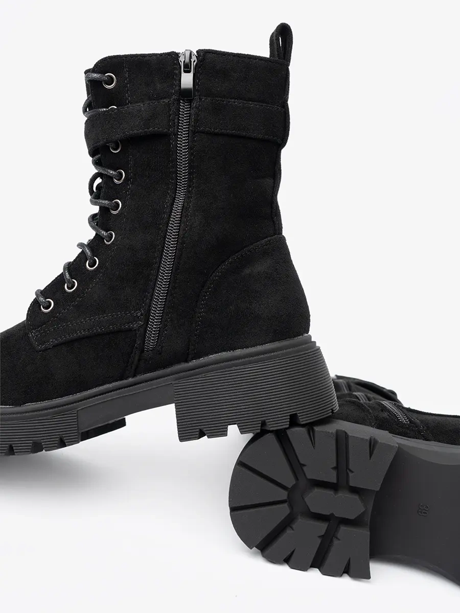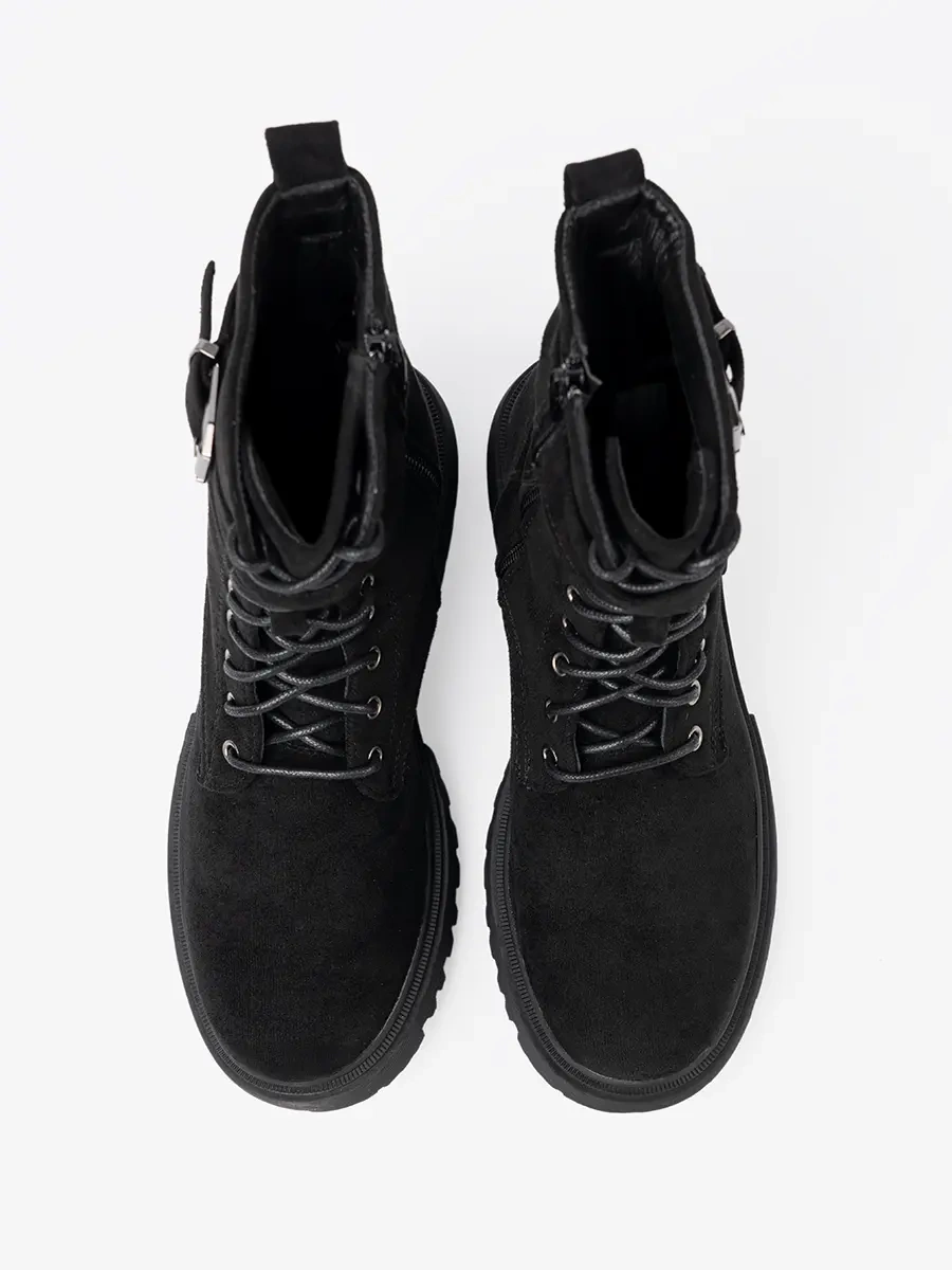 Przedstawiamy najnowszy hit sezonu - czarne workery z klamrą i sznurowaniem. Ten wyjątkowy model to połączenie klasyki i nowoczesności, które wyróżni Cię z tłumu i doda pewności siebie każdej stylizacji.