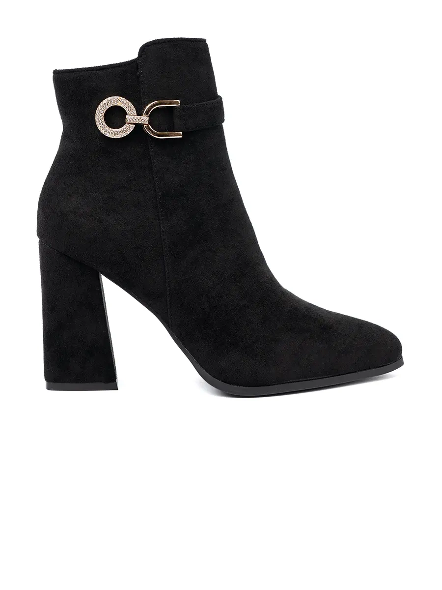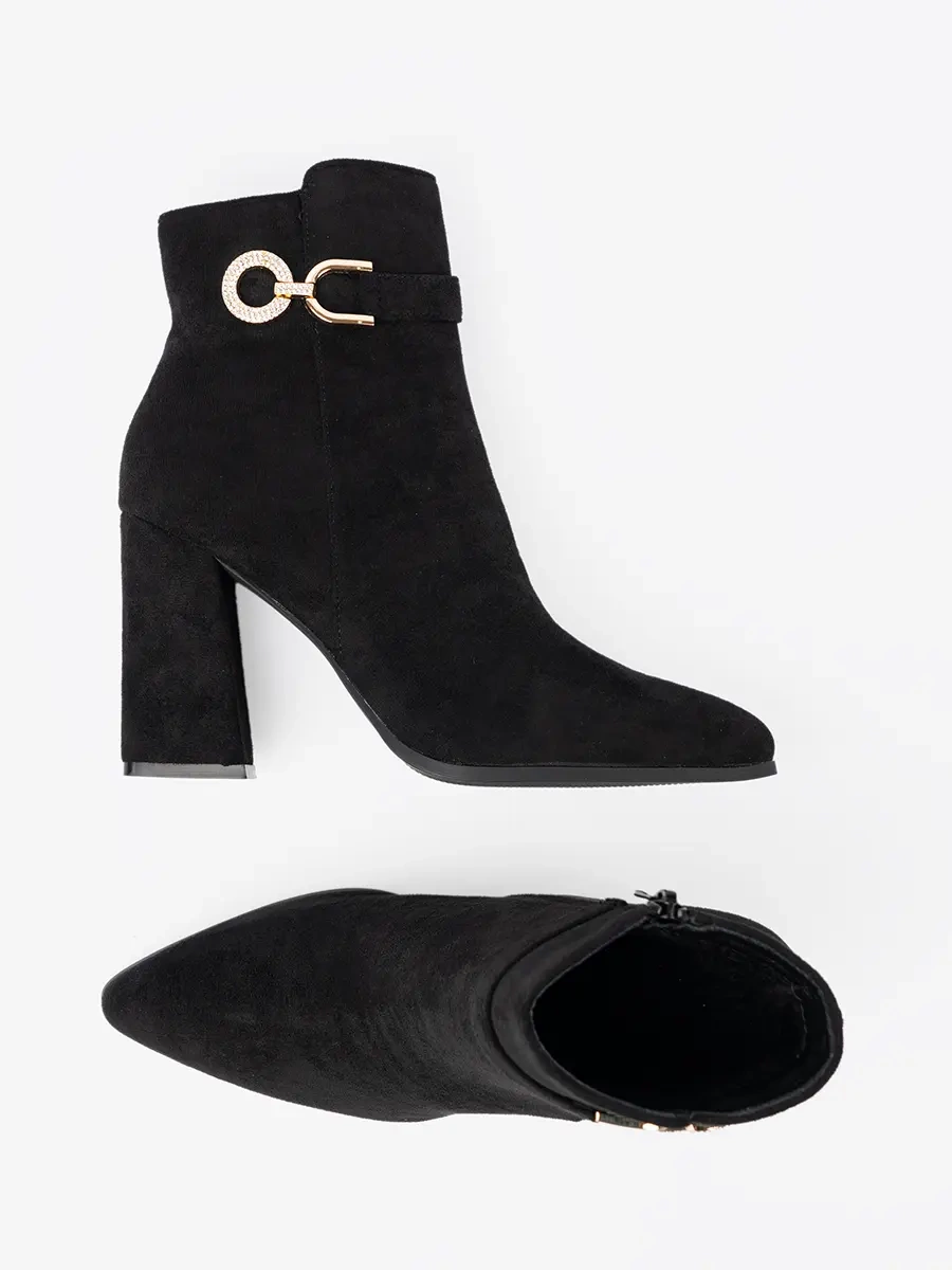 Eleganckie czarne botki z biżuteryjnym akcentem