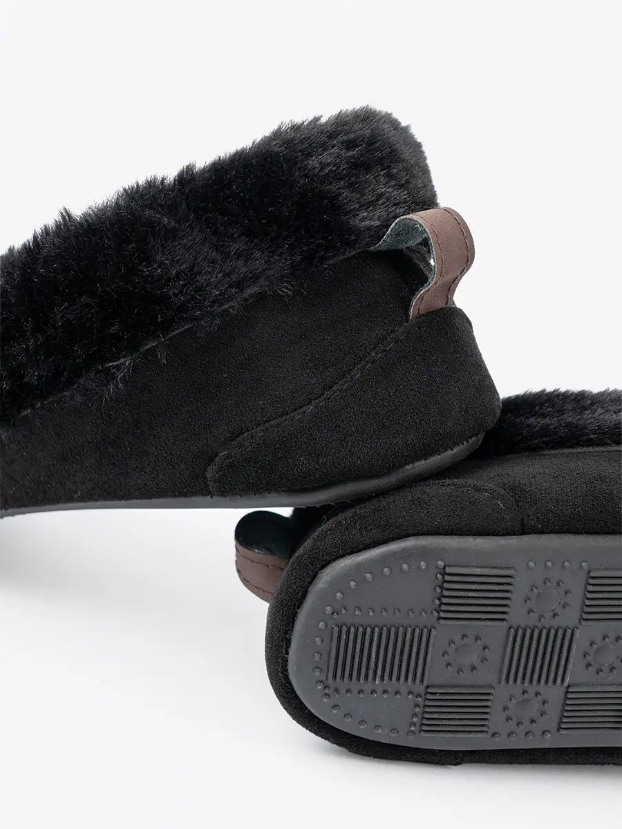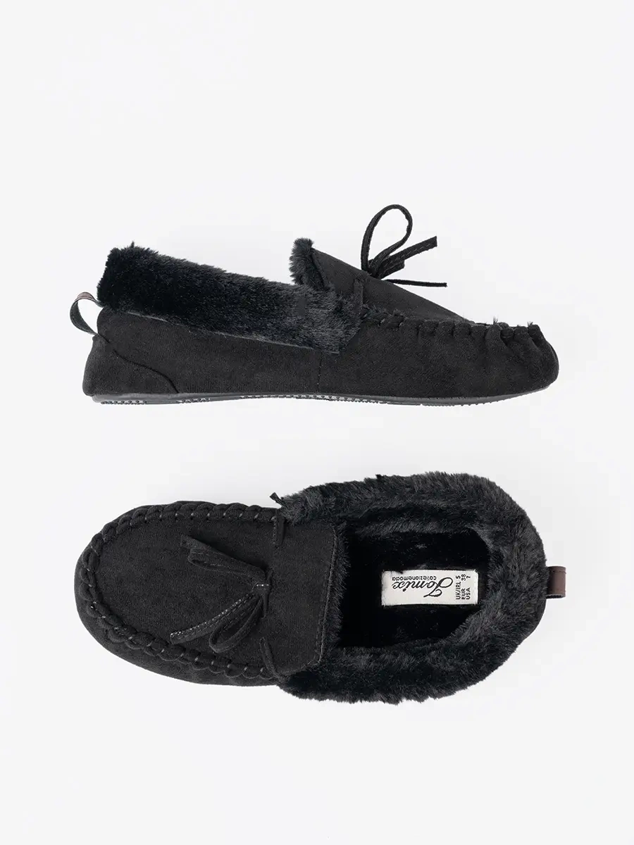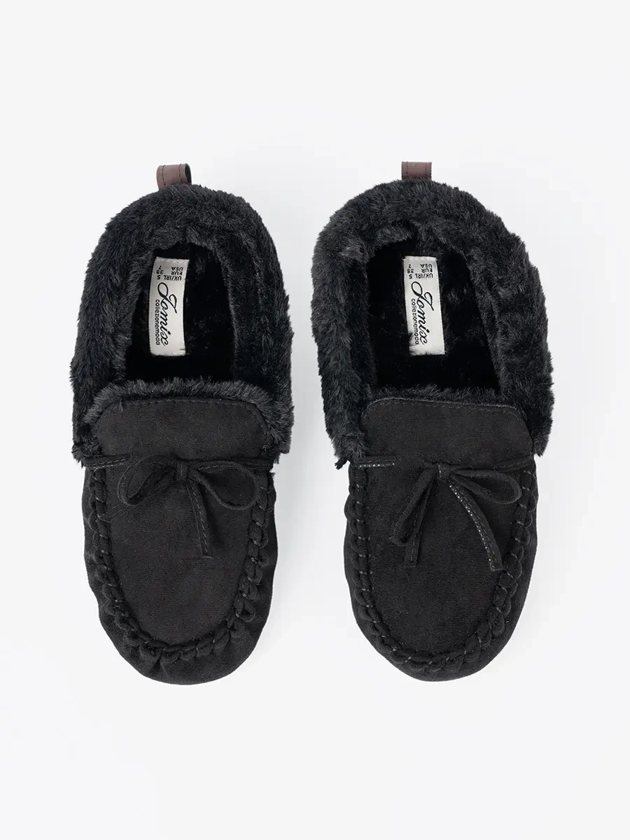 Miękkie, czarne kapcie typu mokasyny z kokardką