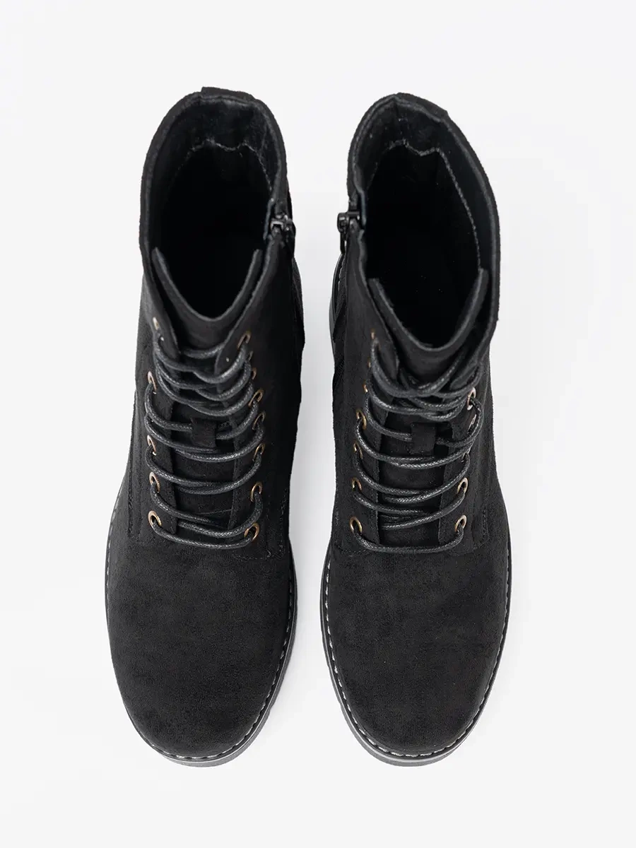 Nasze czarne workery to doskonałe uzupełnienie codziennych stylizacji. Świetnie sprawdzą się zarówno podczas spaceru, zakupów, jak i na spotkanie ze znajomymi. Są wygodne, stylowe i uniwersalne – to obuwie, które zasługuje na miejsce w Twojej szafie!