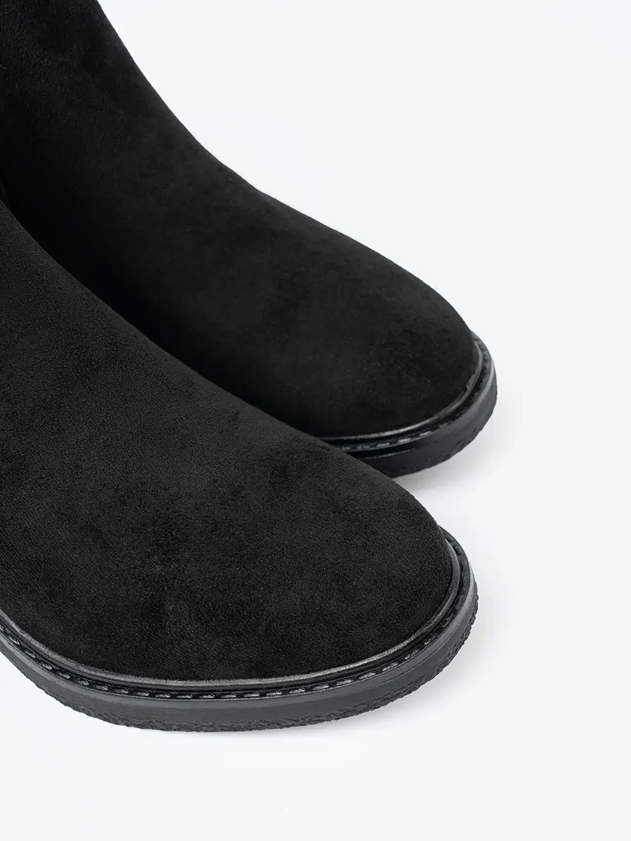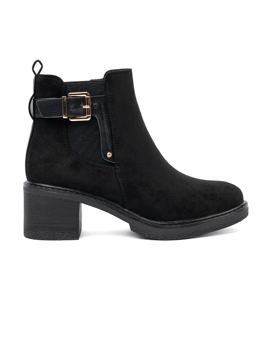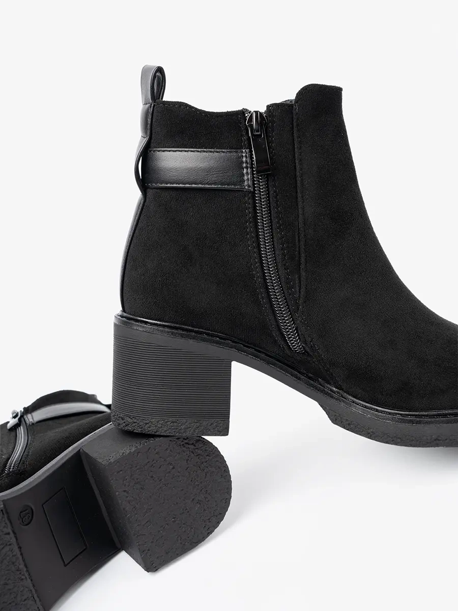 Te botki to prawdziwa gratka dla miłośniczek klasyki w nowoczesnym wydaniu. Wykonane z imitacji zamszu, są nie tylko stylowe, ale i trwałe. Czarne, uniwersalne i zawsze modne - doskonale sprawdzą się w każdej sytuacji. Dodatkowo, klamra nadaje im unikalnego charakteru.