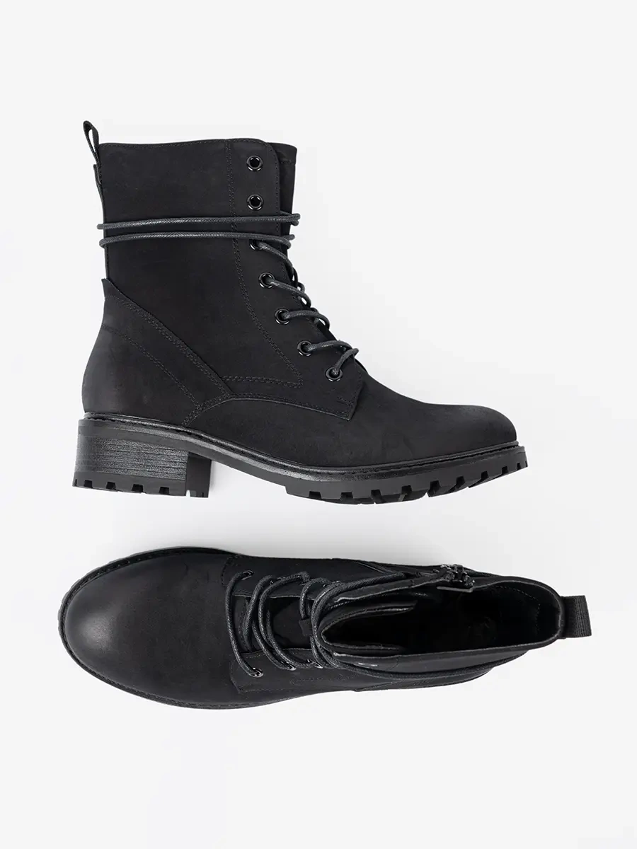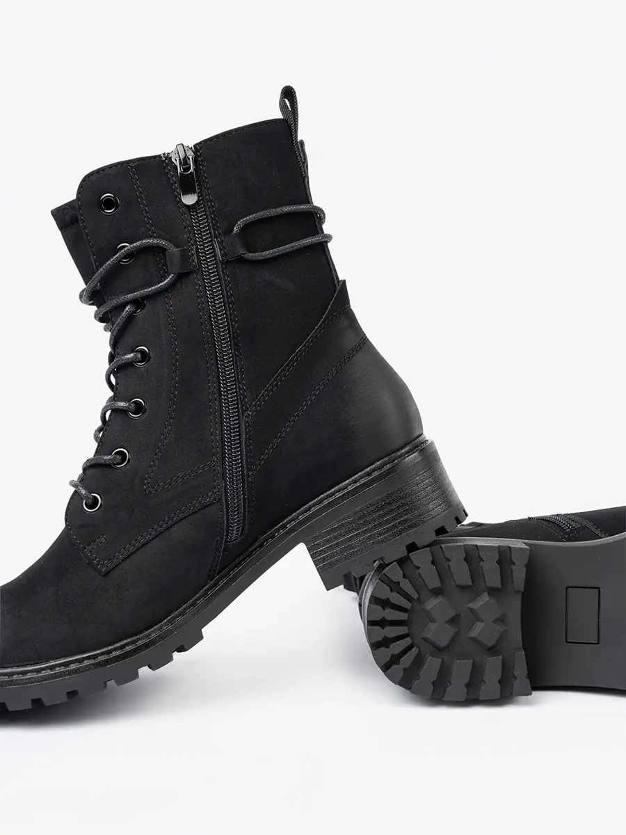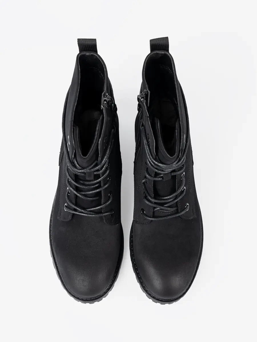 Modne czarne workery z ozdobnym sznurowaniem