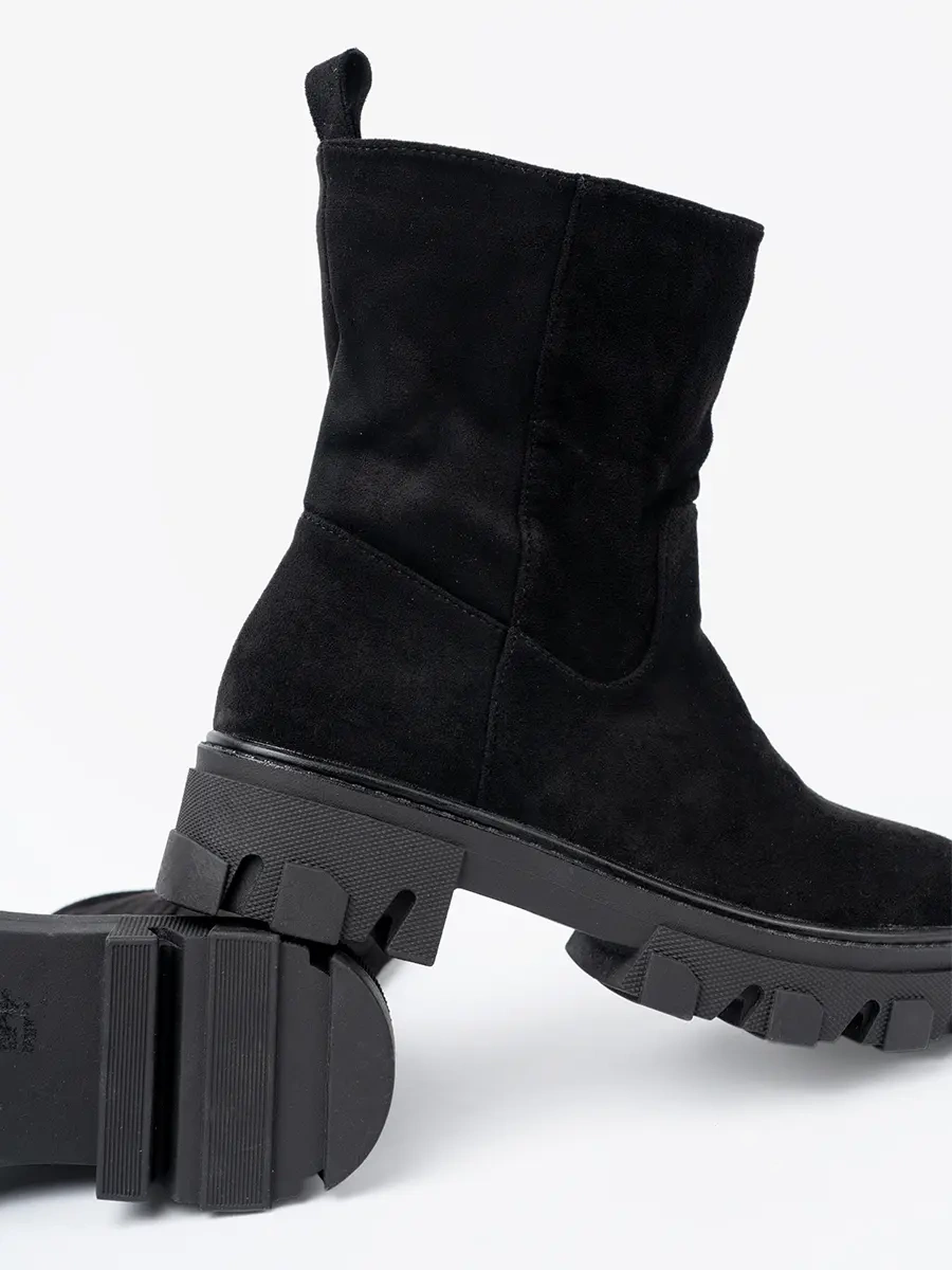 Prezentowane botki damskie są wyrazem klasycznego stylu w nowoczesnym wydaniu. Wykonane z imitacji zamszu, gwarantują nie tylko stylowy wygląd, ale także trwałość i odporność na zmienne warunki pogodowe. Czarny kolor sprawia, że są uniwersalne i łatwo dopasować je do różnych stylizacji.
