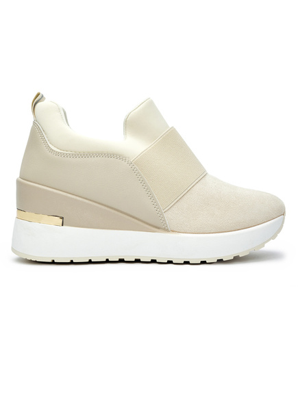 Brown Lace-patterned Sneakers with Hidden Wedge Heel