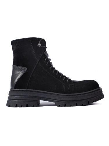 Czarne traperki ze skóry naturalnej