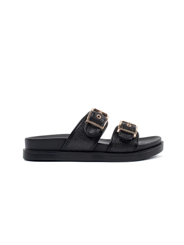 Black flat flip-flops with buckles