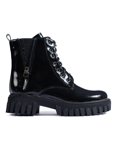 Lace-up Ankle Boots with Decorative Upper in Black Patent