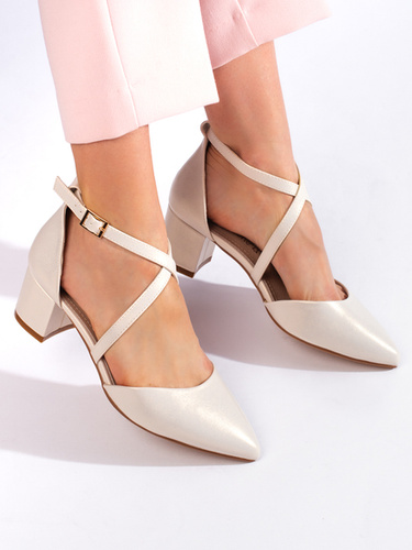 Klasyczne damskie beżowe czółenka na niskim słupku