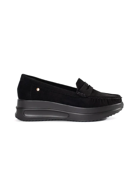 Elegant Black Platform Loafers with Buckle and Sparkling Accents
