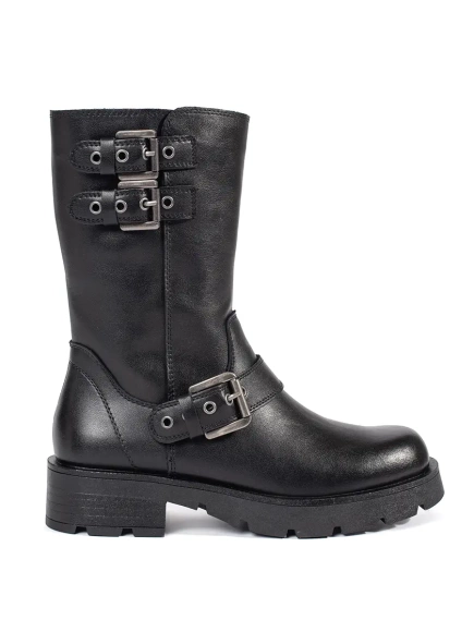 Black Leather Ankle Boots with Straps - Sergio Leone