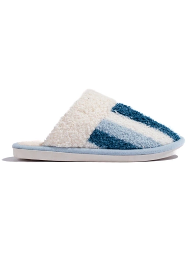 Warm Striped Slippers in White and Green