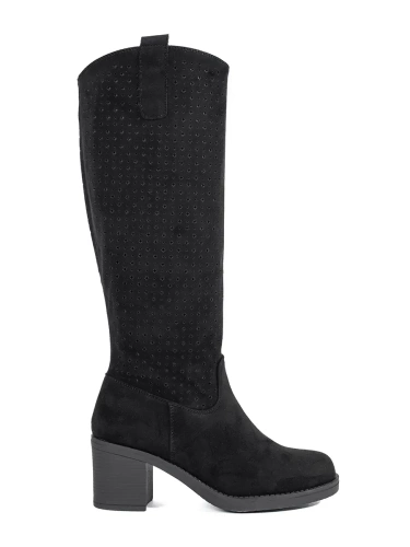 Black Leather Ankle Boots with Low Wedge and Ruched Shaft by Sergio Leone