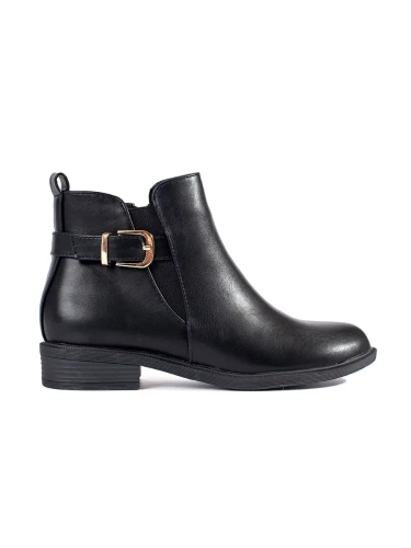 Chic Black Ankle Boots with Strap and Low Heel