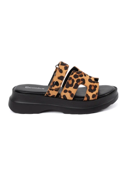 Women's platform leopard print slides