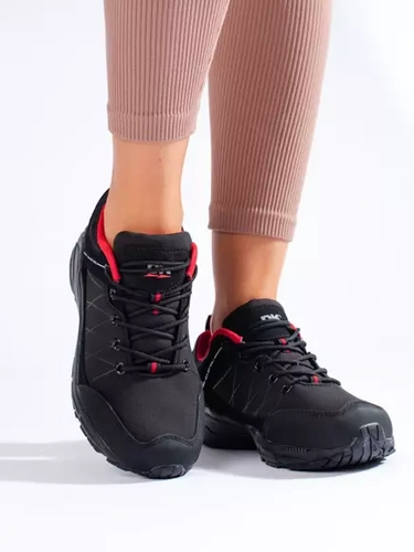 Buty trekkingowe damskie DK Waterproof czarne z czerwonymi wstawkami