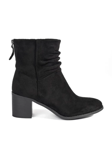 Black Suede Ankle Boots with Ruched Shaft