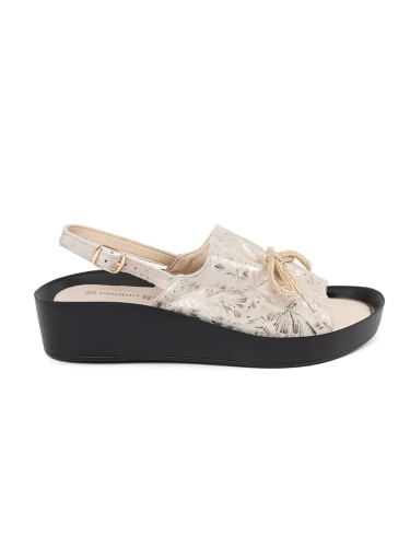 Beige Wedge Heeled Sandals with Cutouts