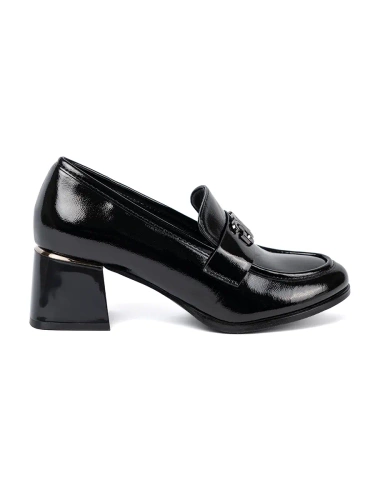Patent leather loafers with silver decoration