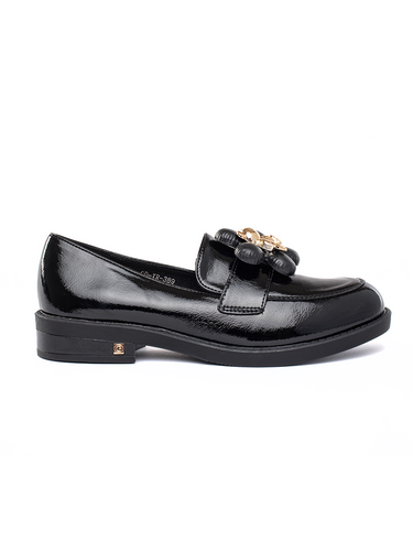 Glossy Black Loafers with Decorative Accent