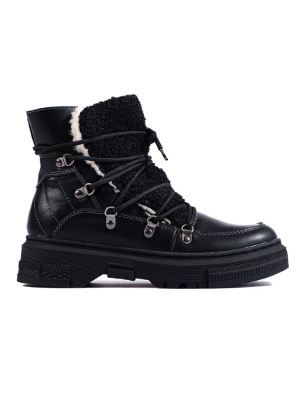 Czarne śniegowce damskie z kożuszkiem