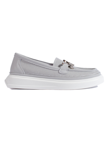 Damskie mokasyny ze skóry ekologicznej srebrne