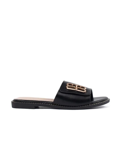 Czarne klapki damskie na płaskiej podeszwie