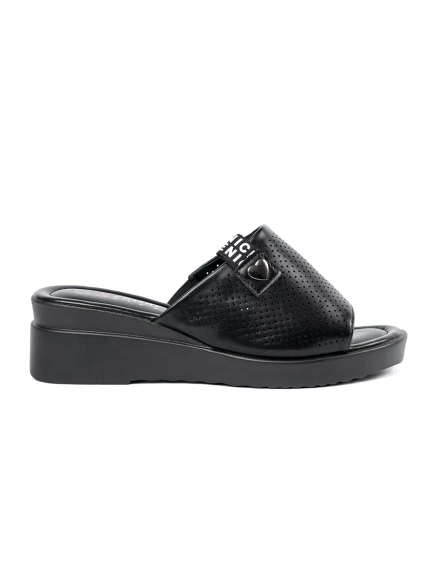 Czarne klapki damskie z ozdobnym kwiatkiem