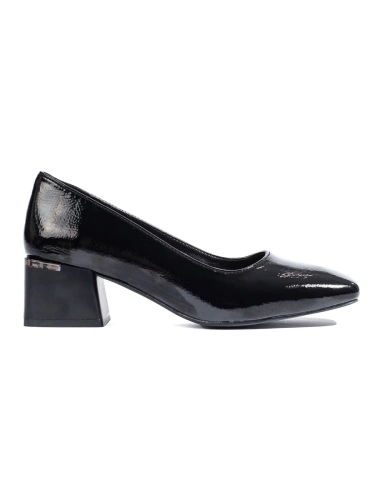 Czółenka damskie na obcasie czarne lakierowane