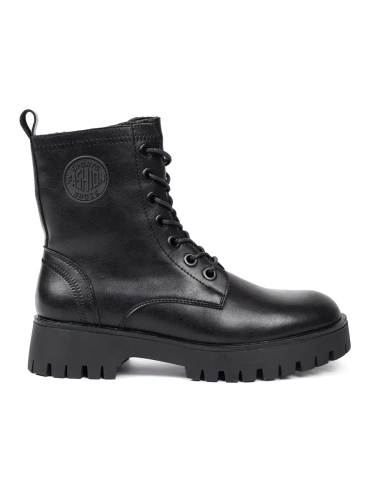 Czarne sznurowane skórzane botki damskie na platformie Sergio Leone