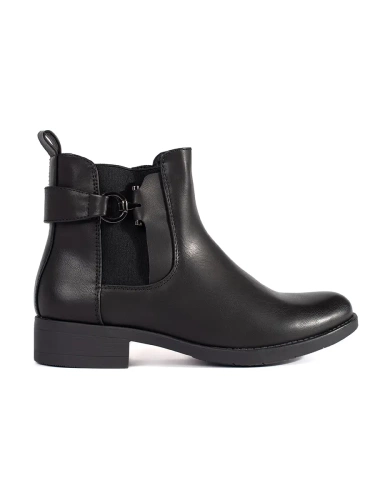Czarne botki damskie na obcasie z klamrami