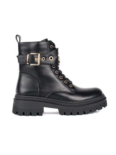 Czarne botki sztyblety z klamrą damskie na obcasie