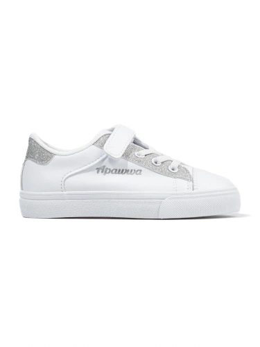Trampki dziecięce białe ze srebrnym brokatem
