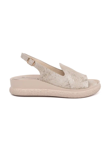 Jasnobeżowe skórzane eleganckie sandały na platformie