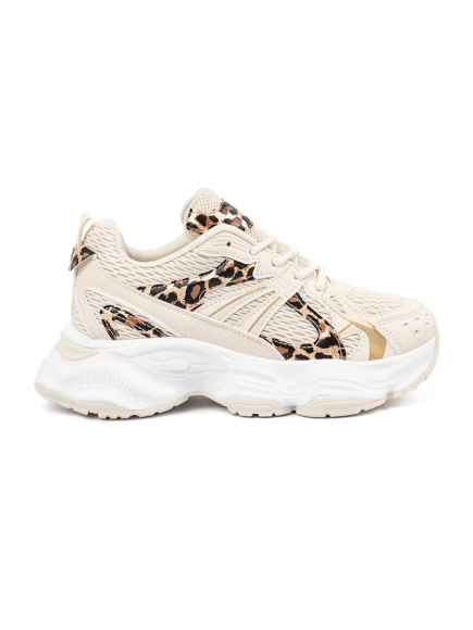 Skórzane ażurowe buty sportowe na grubej podeszwie biało-beżowe