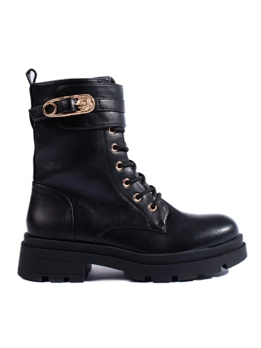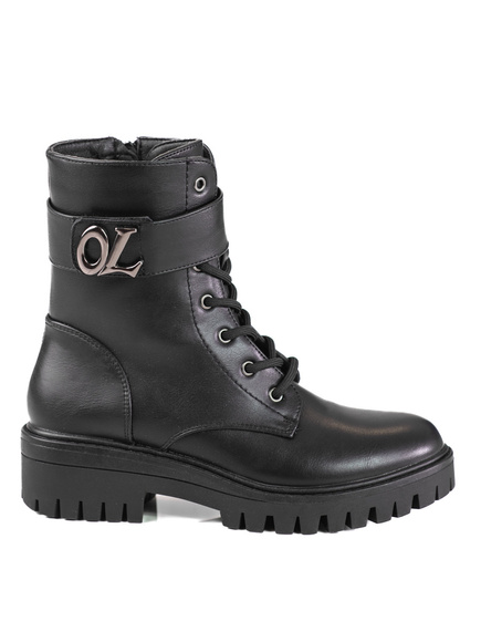 Sznurowane botki damskie na obcasie Potocki czarne zamszowe