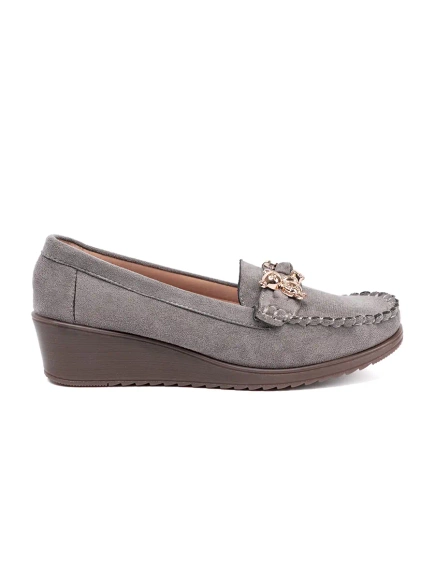 Srebrne mokasyny z dekoracyjnym złotym elementem