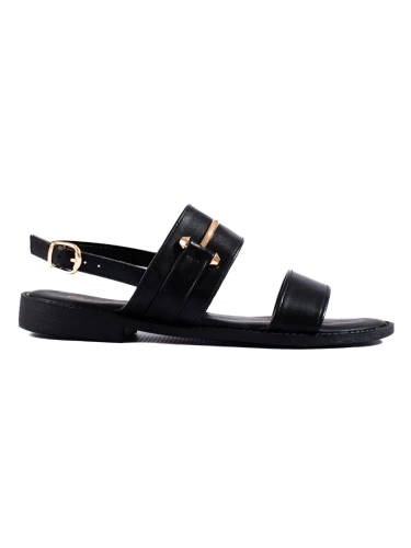 Czarne sandały damskie ze złotą ozdobą Potocki