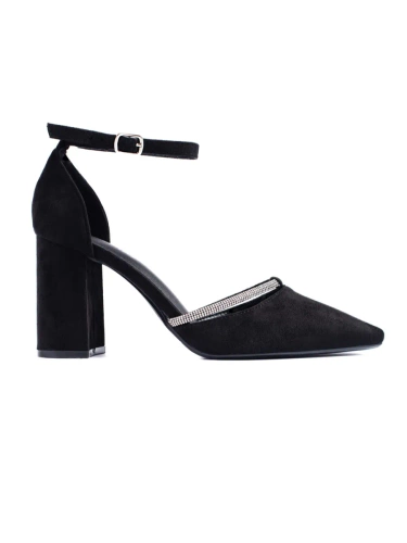 Zamszowe czarne szpilki z łańcuchem Vinceza