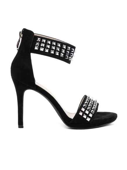 Zamszowe eleganckie czarne sandały na szpilce Sergio Leone