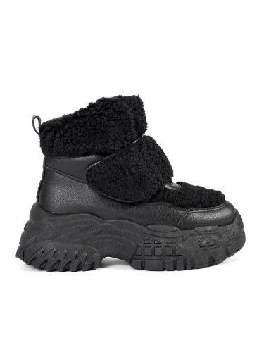 Czarne śniegowce na platformie z futerkiem typu baranek