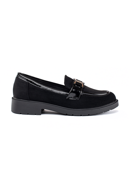 Czarne damskie mokasyny z ozdobnym łańcuchem