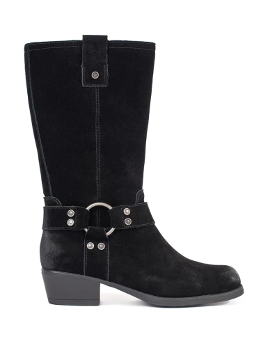 Zamszowe sztyblety damskie na płaskim obcasie brązowe