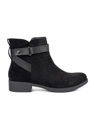 Czarne zamszowe botki damskie z ozdobnym paskiem