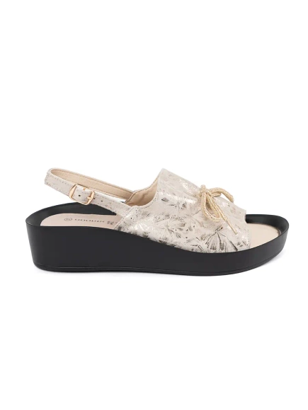 Jasnobeżowe sandały na koturnie ze skórzaną wkładką