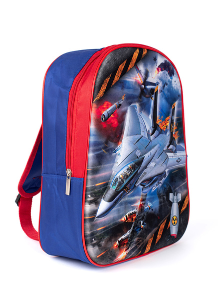 Niebiesko-czerwony plecak dla chłopca ze statkiem kosmicznym