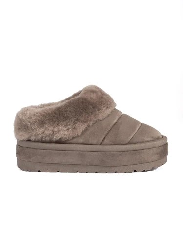 Beżowe niskie wsuwane śniegowce damskie z futerkiem