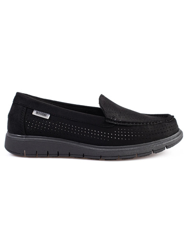 Czarne mokasyny damskie ażurowe
